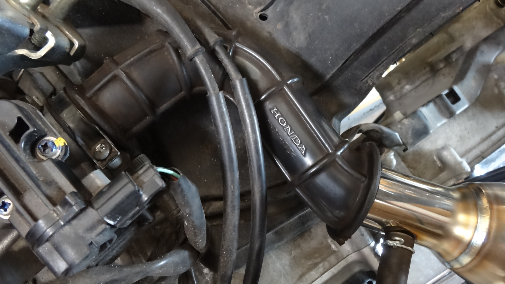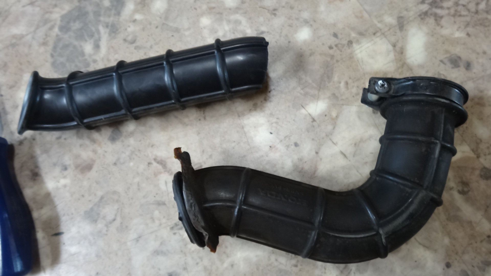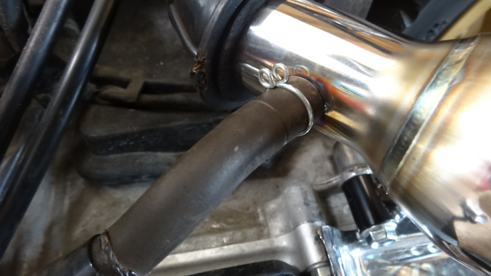 エアクリの取付位置とホースの曲がり具合を考えてカットしちゃいます