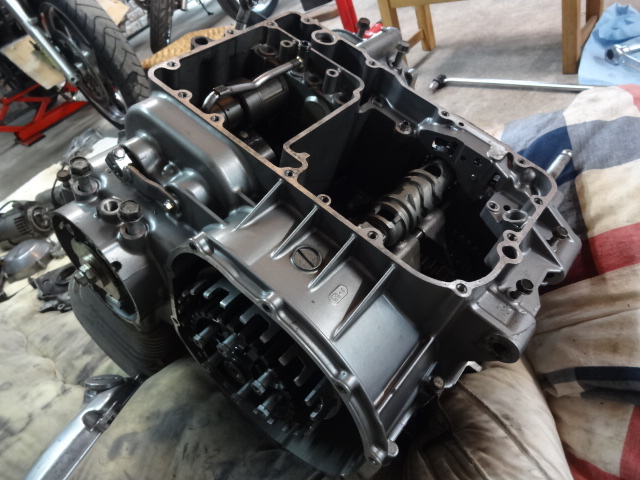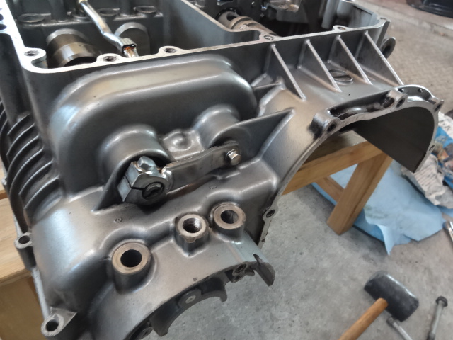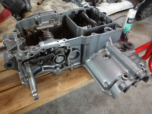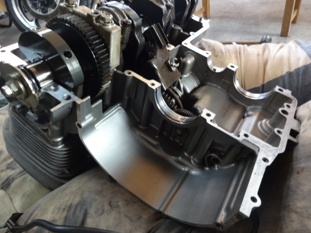 クランクケースを綺麗にしながら