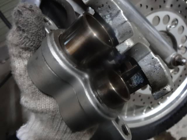 キャリパー本体外してバラしてピストン綺麗にします。